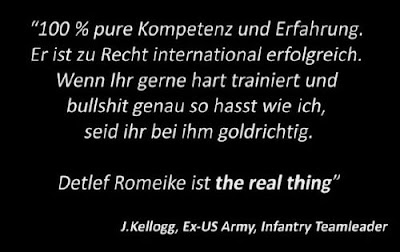 Rückblick:Bereits als Kind erkrankte Detlef an Rachitis und später an Rheuma. Um diese Krankheiten zu überwinden, musste er hart an seiner Gesundheit arbeiten. Vielleicht liegt hier der GrundstDetlef Romeike ein für seine Begeisterung für körperliches Training und das Thema Gesundheit. Trotz seiner Einschränkungen wurde er ein hochbegabter, junger Leistungssportler. Besonders im Bereich Kampfsport, den Detlef seit seinem siebten Lebensjahr gezielt betreibt. Seine Suche nach wahrer Stärke und effektiver Selbstverteidigung führten ihn über die Jahre immer wieder nach Asien, aber auch in viele Länder Europas.